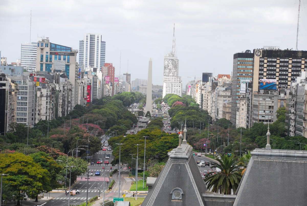 Wir laufen weiter zur Avenida vom Neunten Juli. Sie ist eine gewaltige Straße mit vielen Fahrspuren. Vielleicht trifft die Bezeichnung Prachtstraße besser zu. Jedenfalls ist sie mächtige 140 Meter breit. Von dieser Avenida aus sehen wir in einer Richtung den großen Obelisken, der mit seinen 67 Metern Höhe gerne zur Orientierung genutzt wird, und in der anderen Richtung unser Hotel.